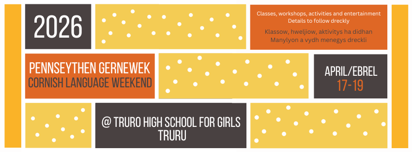 The Cornish Language Weekend 2026 will be held on the 17th – 19th April 2026 at Truro High School for Girls, Falmouth Rd, Truro TR1 2HU.